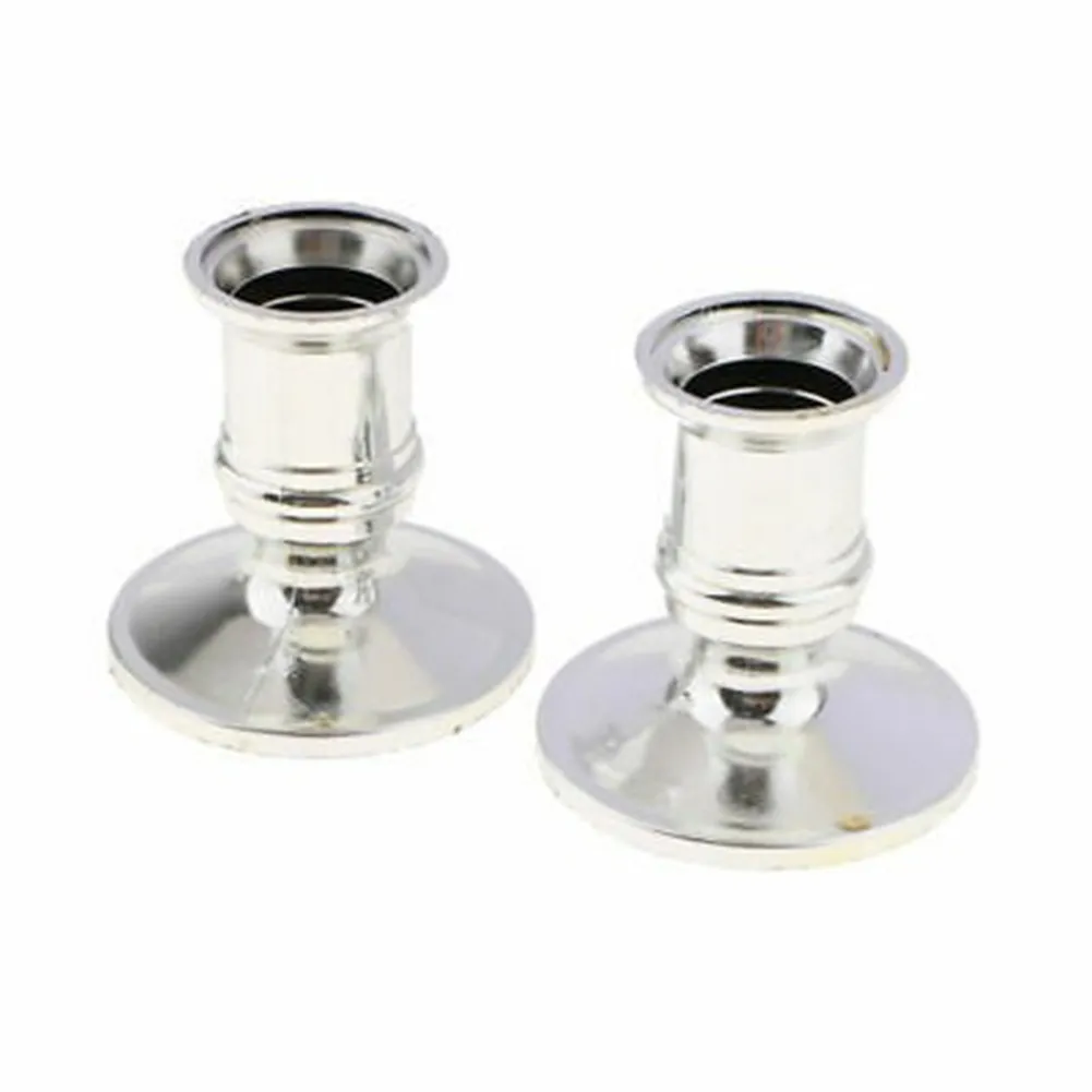 *2pcs Taper Candle Holders Traditional Shape Fits Standard Candlestick Silver