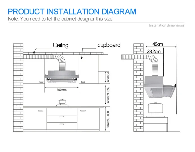 Hood installation position:top suction