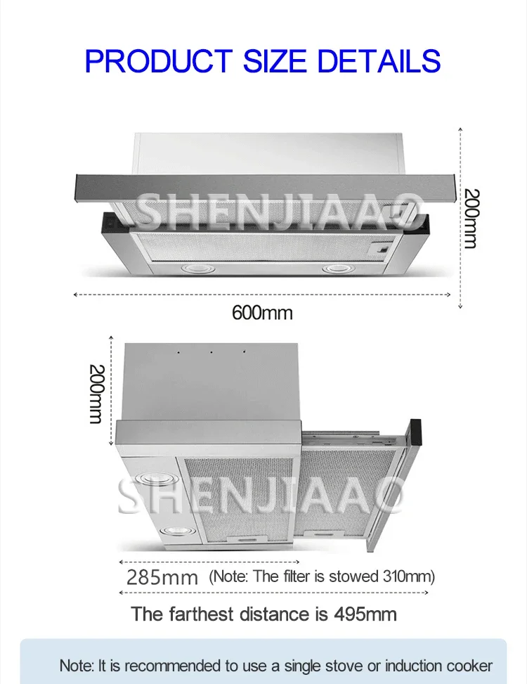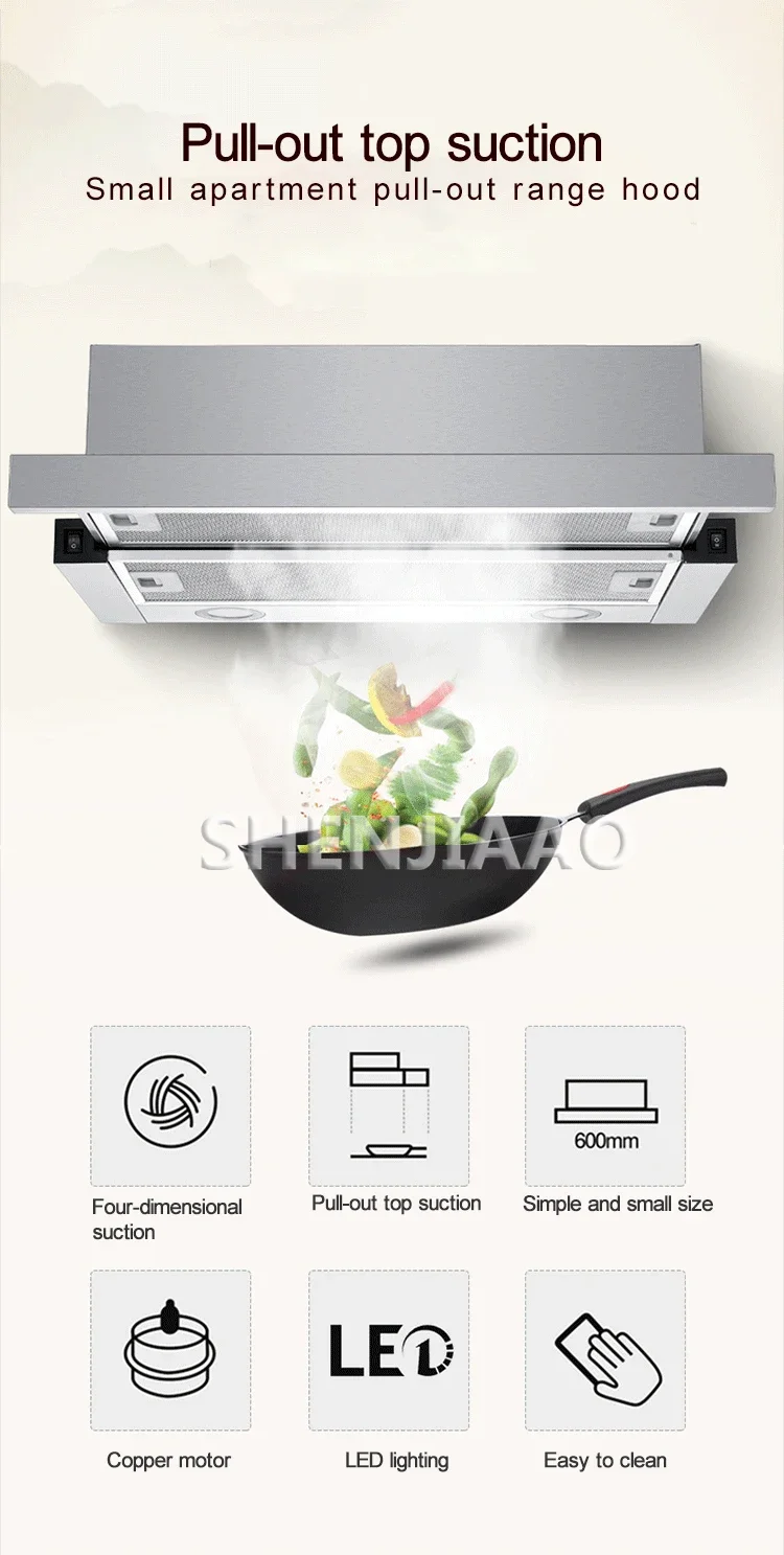 600mmMini Range Hood Household Kitchen Exhaust Hood Range Hood Pull-Out Range Hood Stainless Steel Kitchen Apartment Range Hood