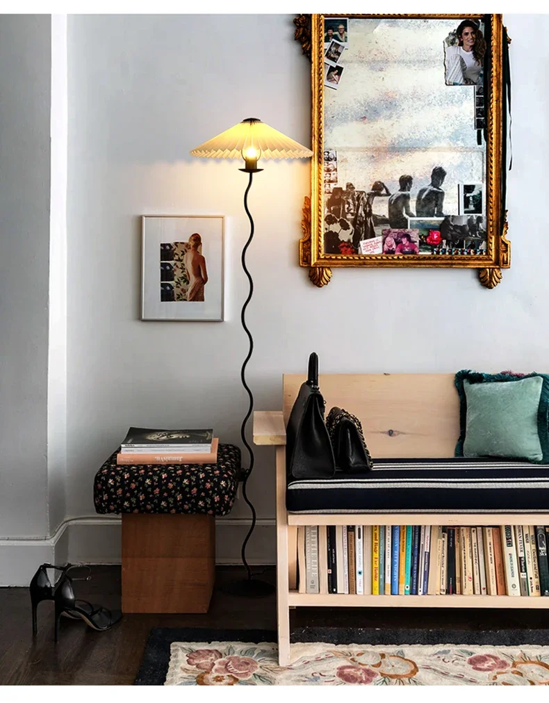 French Cream Floor Lamp Japanese Retro Living Room Bedroom Study Floor Table Lamp Nordic Vertical Bedside Atmosphere Lamp