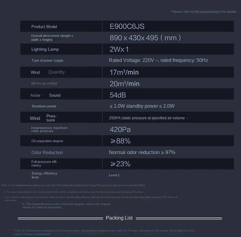 Exhaust air volume of range hood: 20 cubic meters per minute
