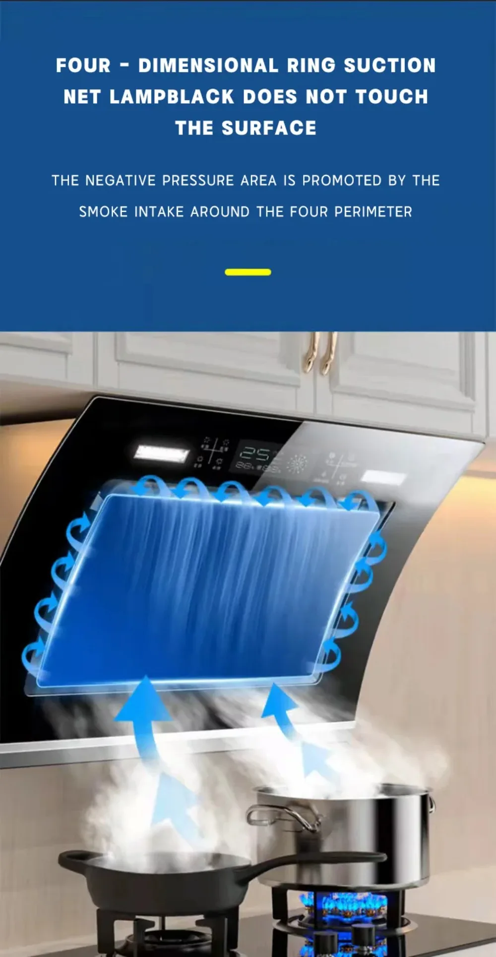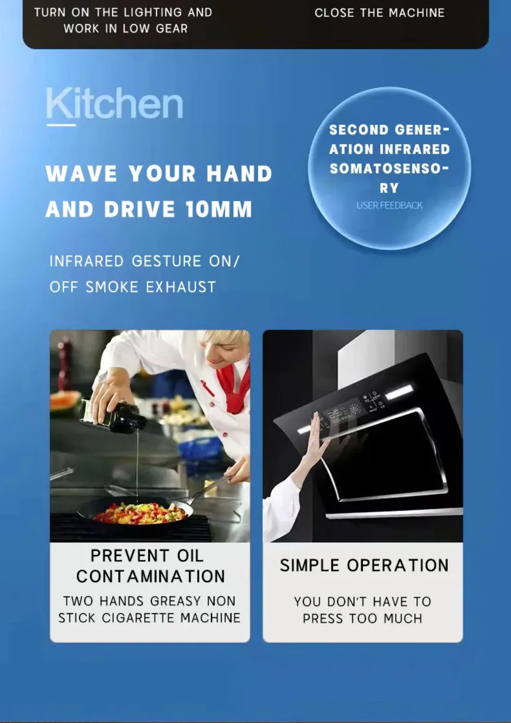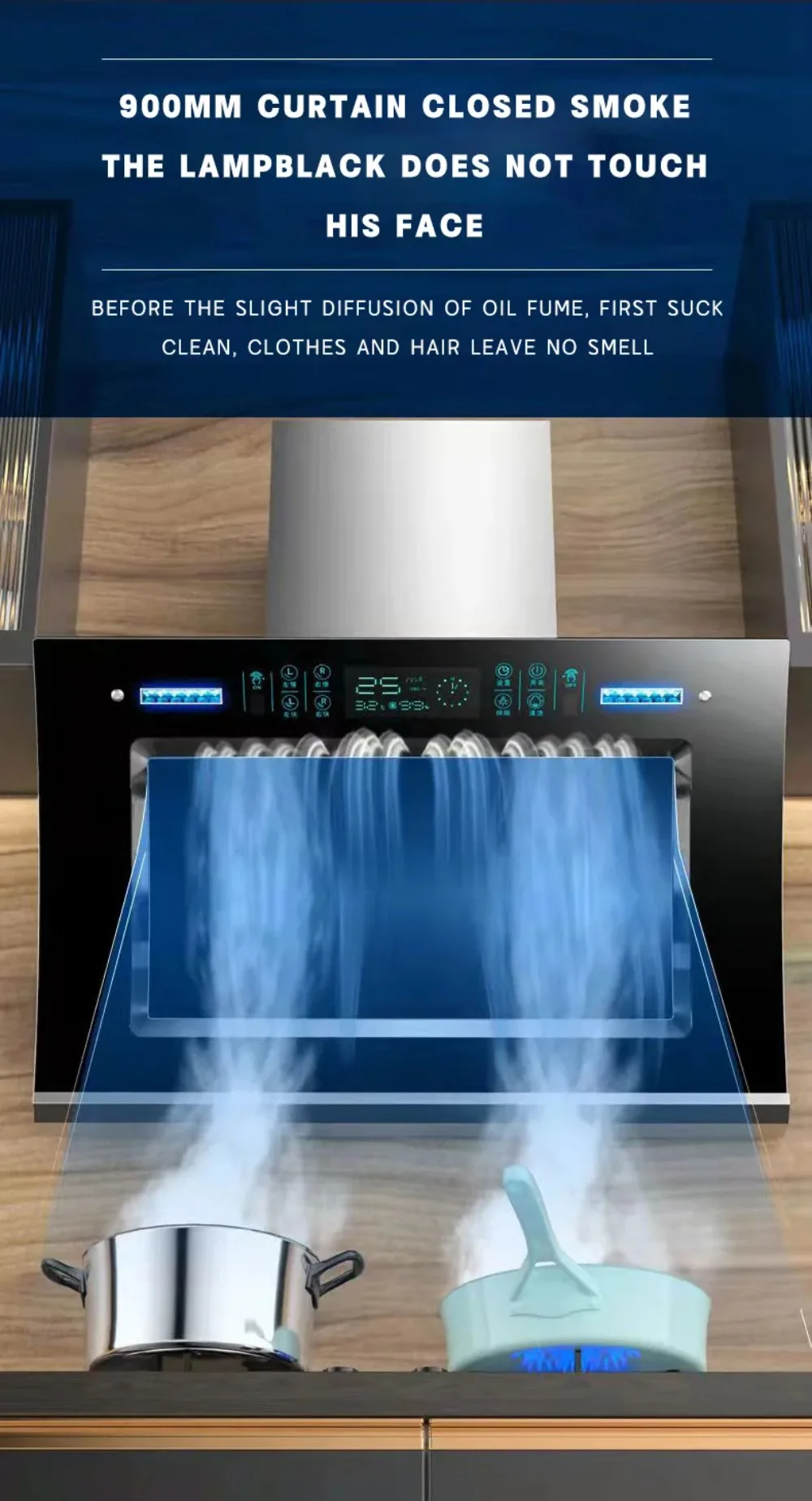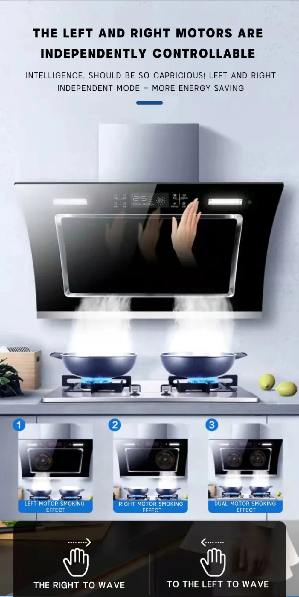 Kitchens Hoods Extractor, Domestic Electric Top Suction Cooker Hood, Intelligent Gesture Control, Wall Mounted Lower Noise