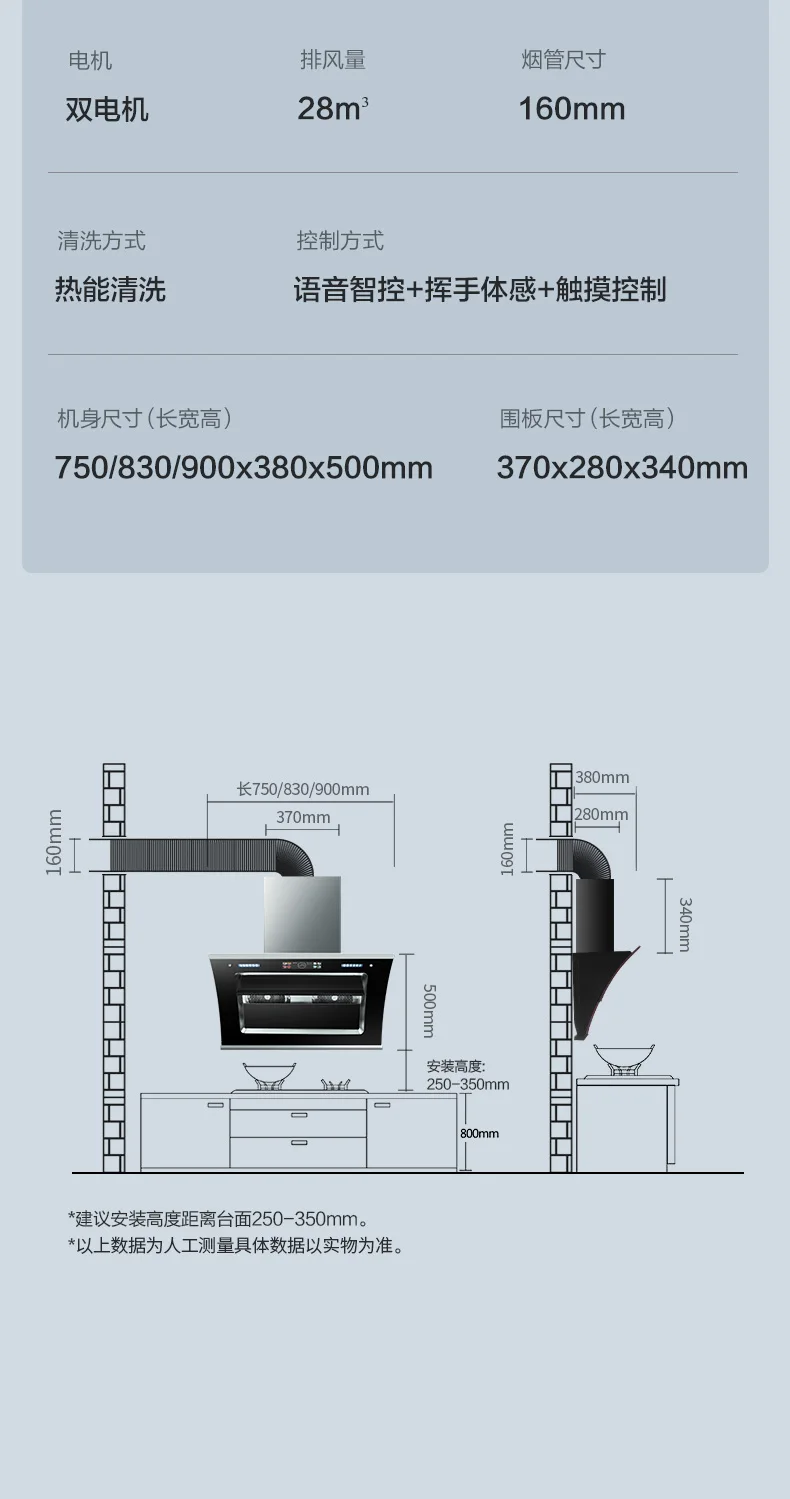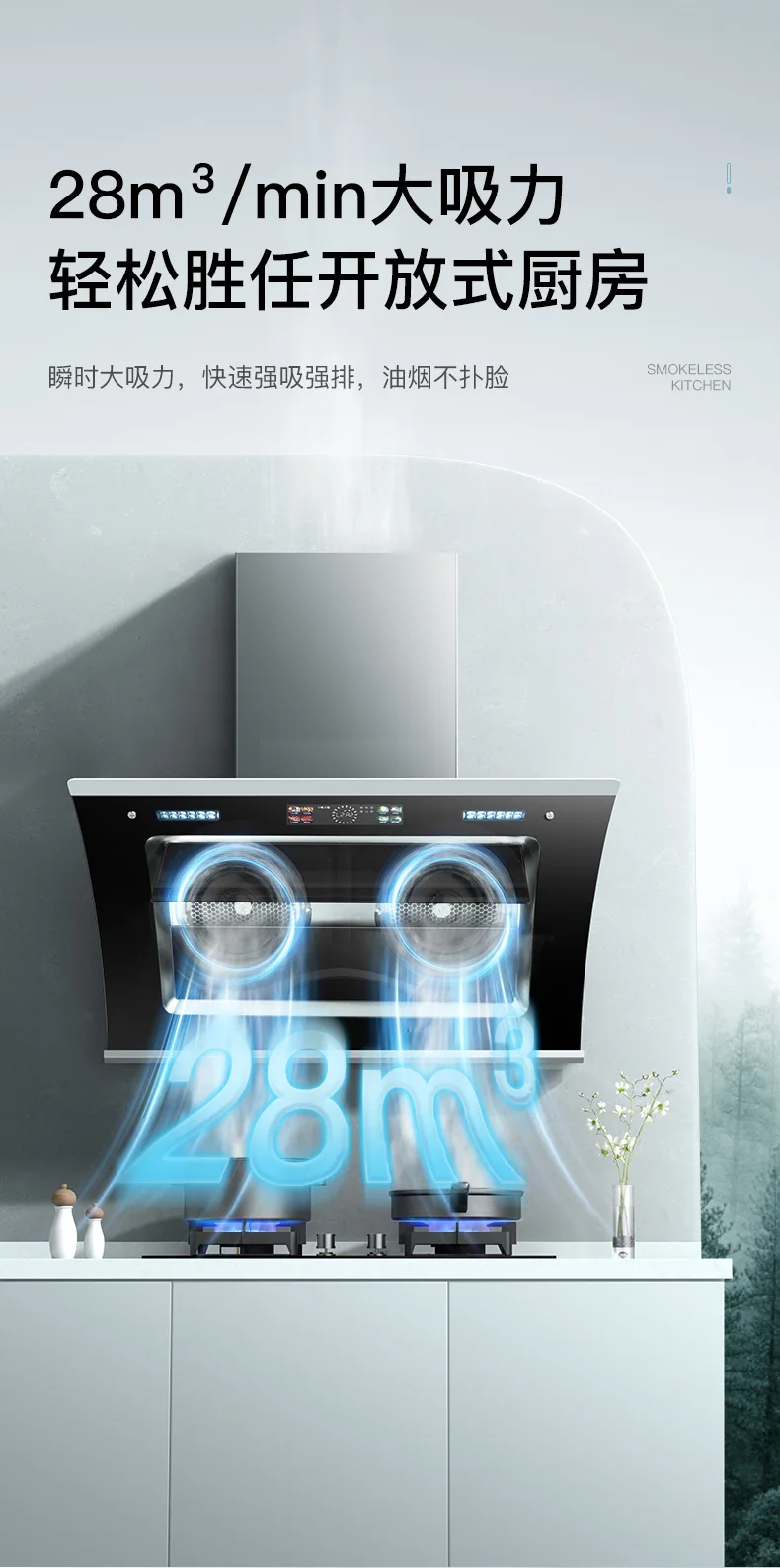 Exhaust air volume of range hood: 28 m³/min
