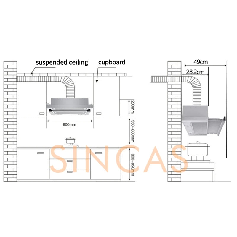 Range Hood For Kitchen Rental RoomTop Suction Kitchen Drainage Kitchen Ventilator Large Suction Exhaust Hood Energy Conservation